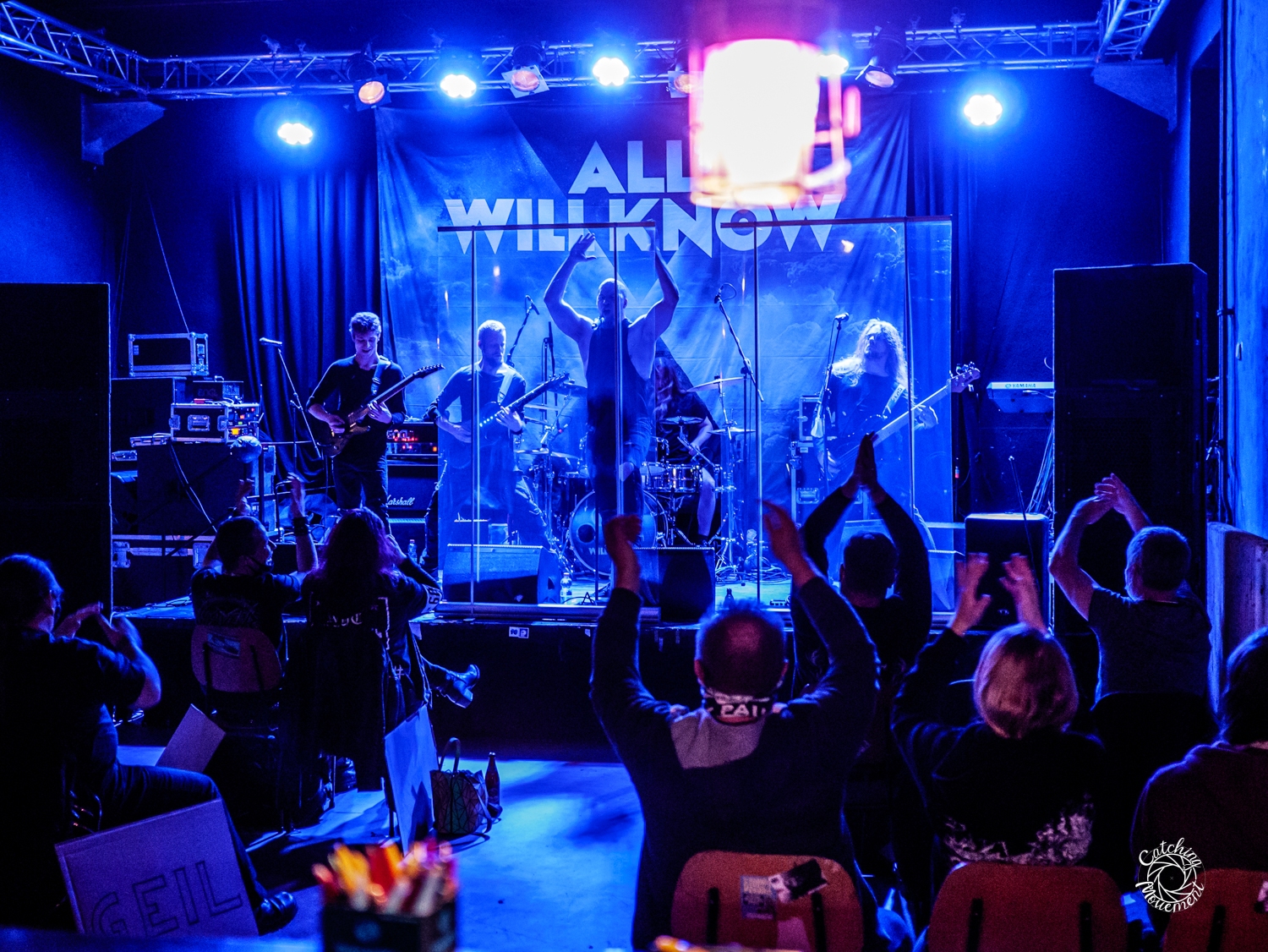 Third band of the evening was ALL WILL KNOW, the band of the organizer Jan Jansohn. Playing fine melodic death metal with two singers and one shouter, they had their usual very strong outing to blow everybody away.