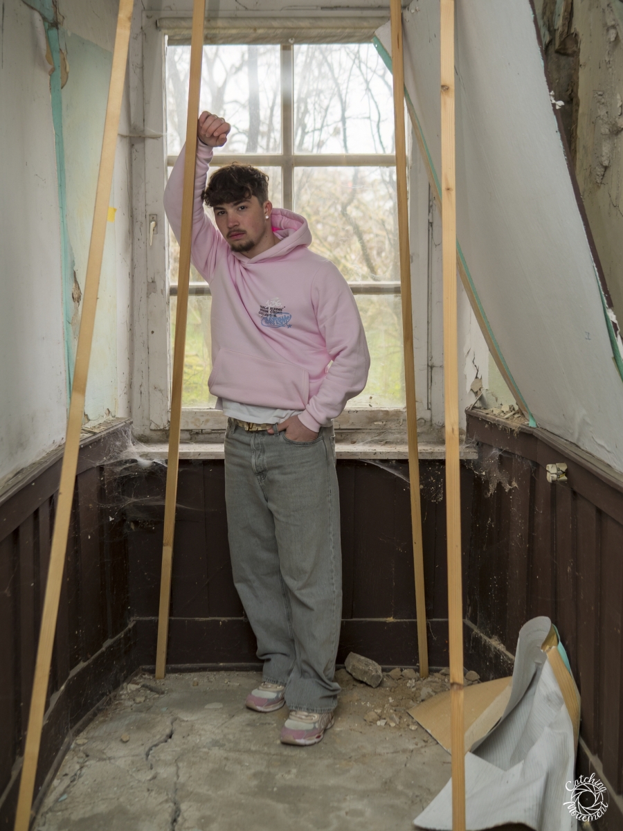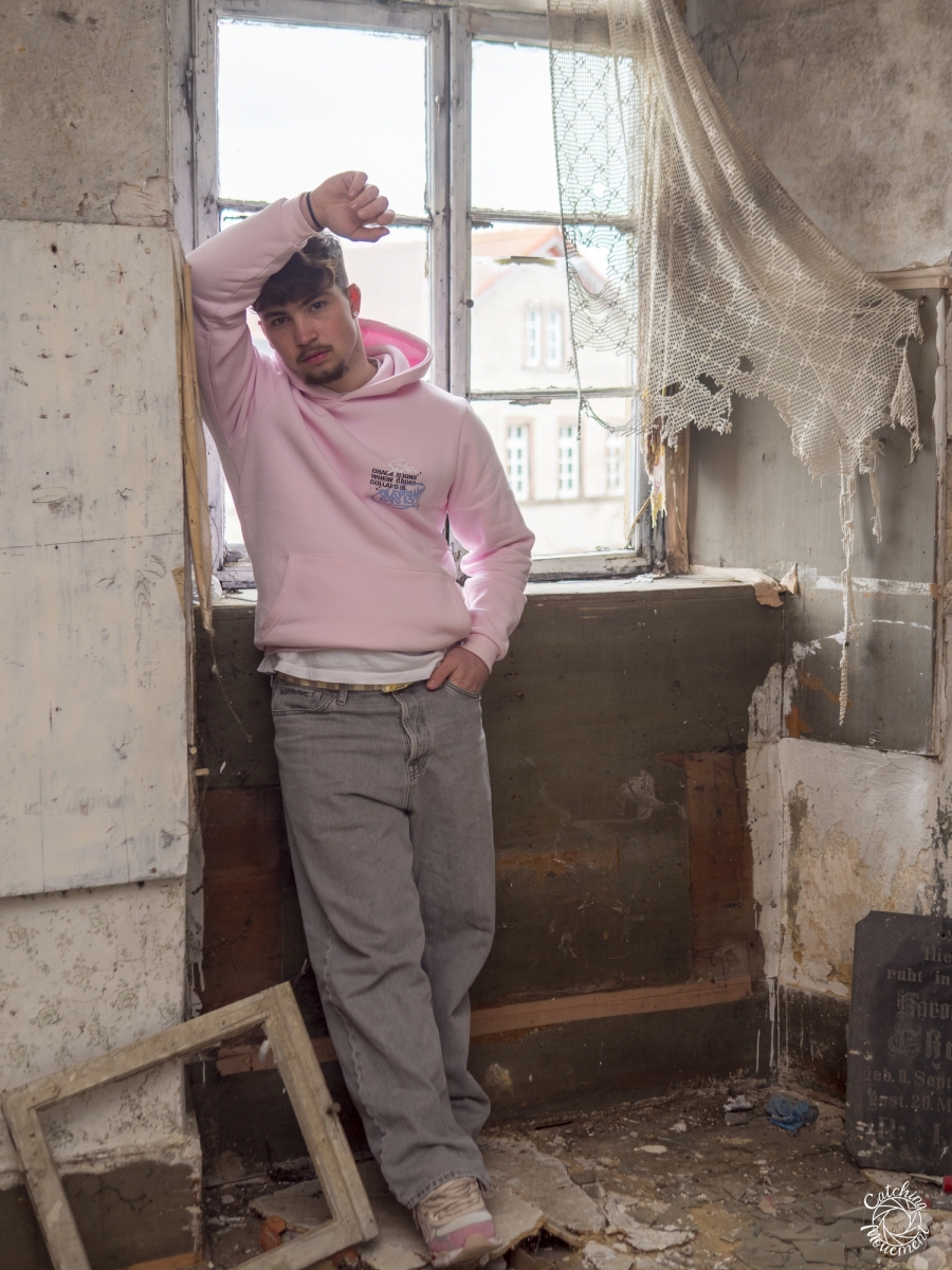 While waiting for my next model at the abandoned location photo shoot, I spontaneously got the chance to shoot with Fabio. We walked back and forth a bit on the ground floor and then decided on the spot what we could do in the different rooms. That’s how the following photos came about.