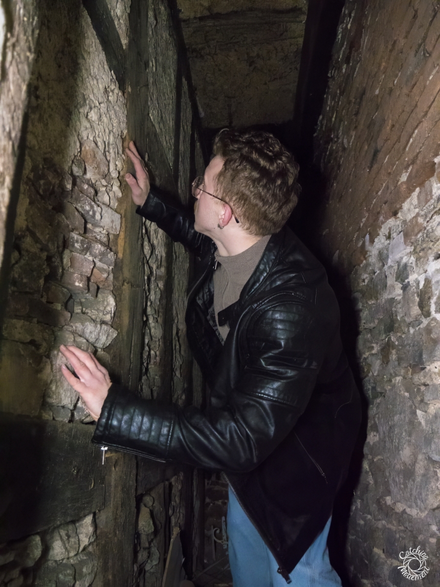 Our way through the ground floor then led us to another storage room and to the vaulted cellar, which only had a small mini window. Finally, we went back to the lounge, where we took a few more photos in the stairwell.