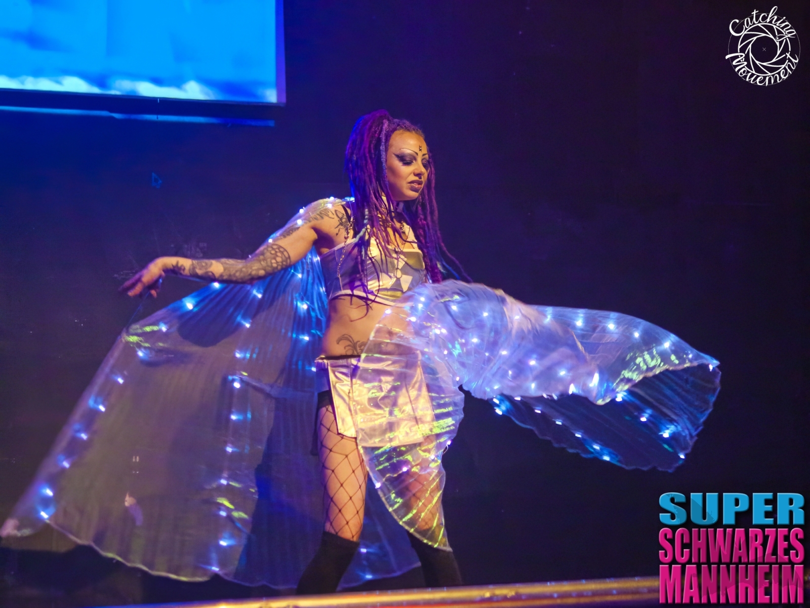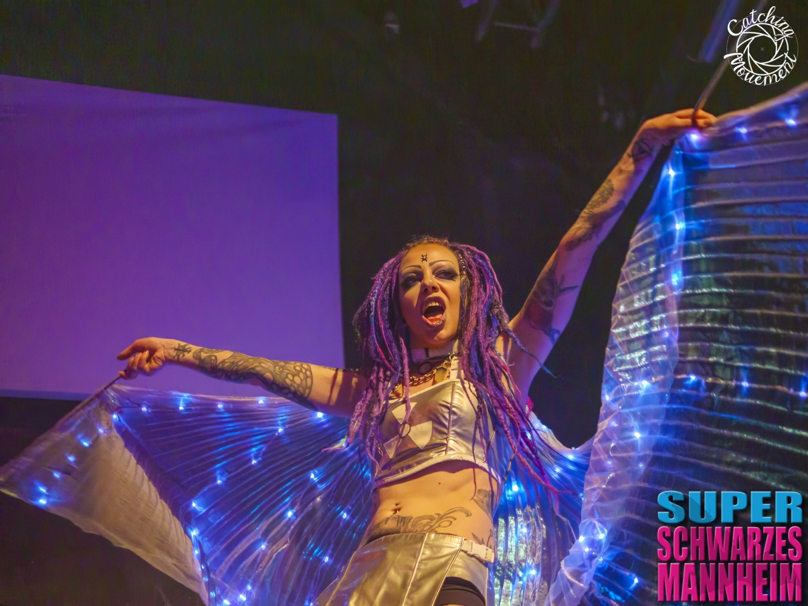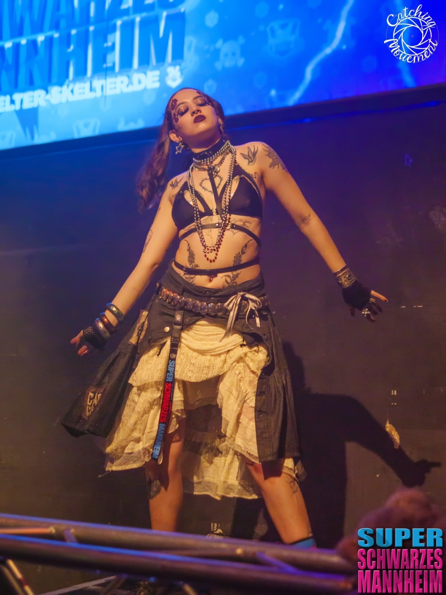 The Super Schwarzes Mannheim is a Gothic, Metal and EBM Party at the MS Connexion Comples in the city of Mannheim. One of the bigger parties of the dark scene. A party from the same scene as the Final Darkness parties which I also cover, so some visitors can be found at both parties. But first some fotos of the Helter Skelter Dance Squad which dances at the Super Schwarzes Mannheim parties.